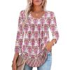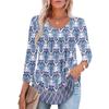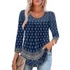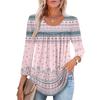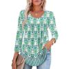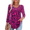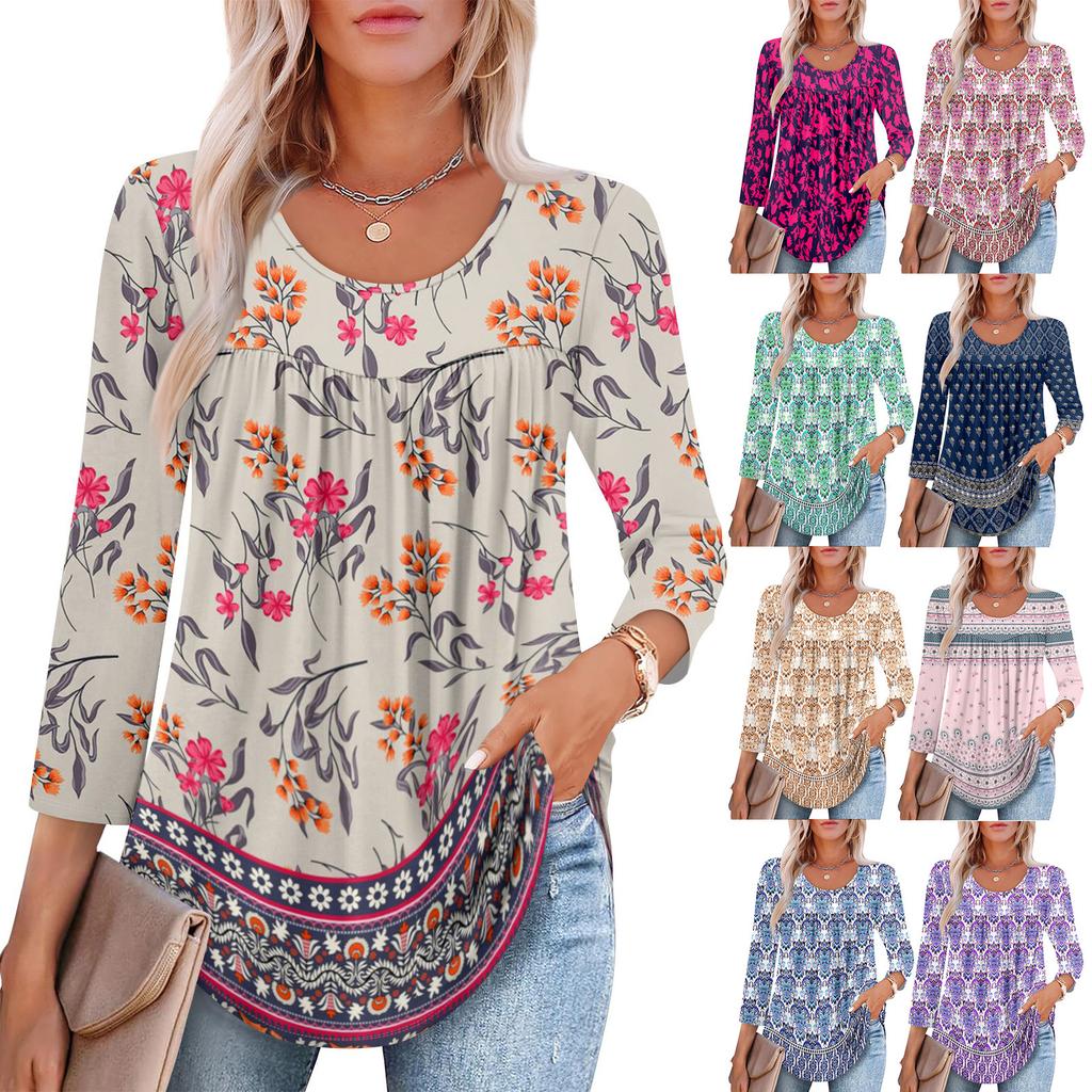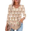 Women's Fashion Seven Sleeve Top Round Neck Pleated Casual Printed Top