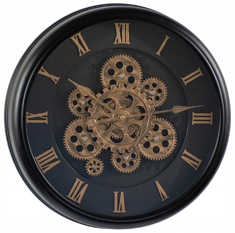 Okrągły Zegar Ścienny Dekoracyjny 38cm Czarny Z Obrotowym Mechanizmem