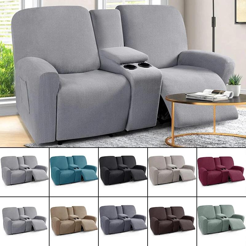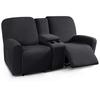 Solid Color Recliner Covers All-inclusive Loveseat Center Console Sofa Covers Elastic 2Seater Couch Slipcovers with Cup Holder