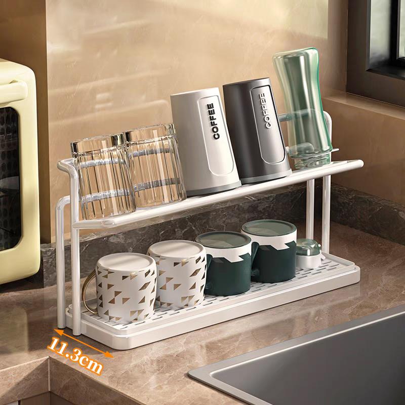 2 Layer Bottle Drying Rack Cups Storage Rack with Drain Tray, Mug Organizer for Kitchen, Coffee Mug Holder for Kitchen Counter