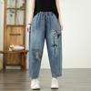 Summer Women Plus Size High Waist Loose Jeans Vintage Harem Pants Elastic Waist Patchwork