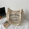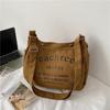 Stylish Korean Vintage Canvas Tote Bag For Women With Spacious Capacity And Trendy Lettering In Cream Brown Or Black
