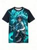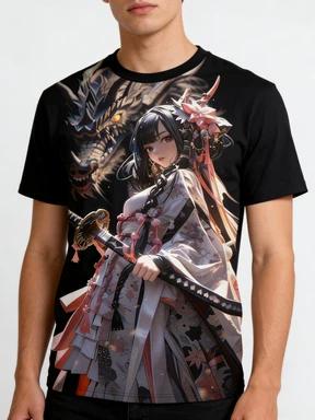Men's Japanese Anime T-Shirt - Female Warrior and Dragon Graphic Short Sleeve