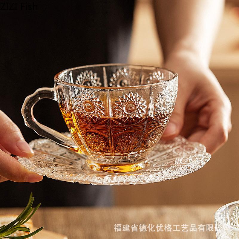 BRRelief Glass Coffee Cup Set Restaurant Afternoon Tea Lovers Coffee Latte Cup Transparent Mug Nordic Household Drinking SetEY