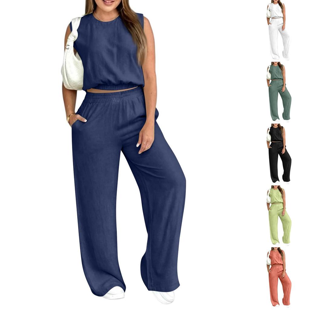 Women's 2-Piece Fashionable Casual Loose Fit Sleeveless T Shirt Top And Pants Set