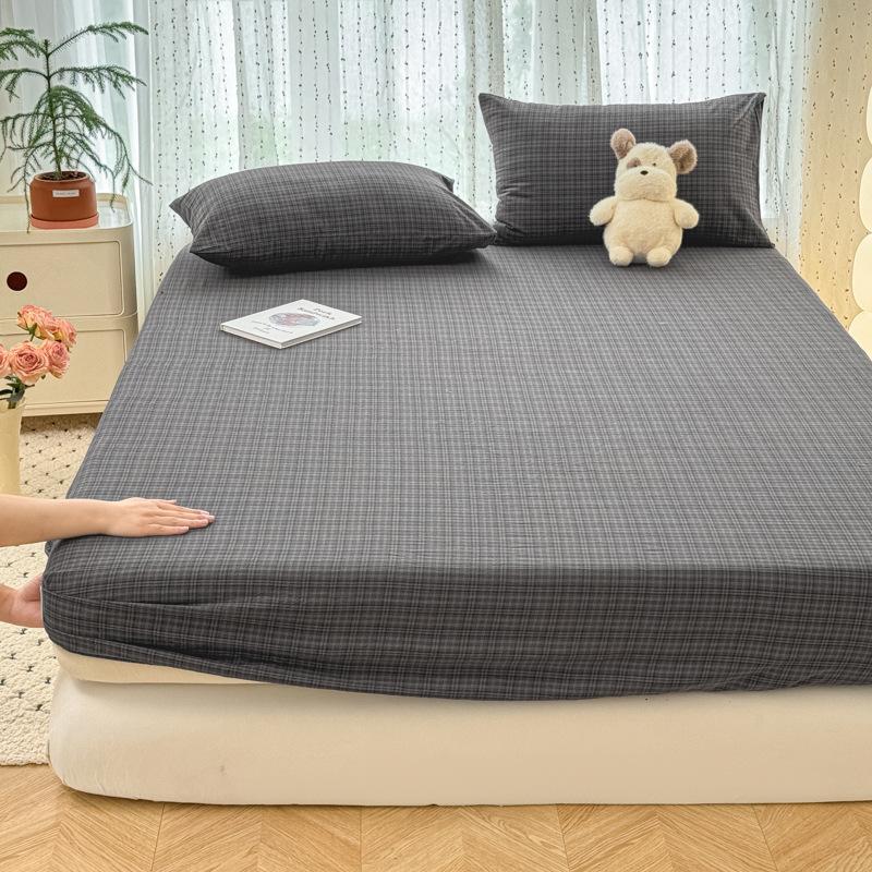 Pure Cotton Yarn-Dyed Washed Fitted Sheet: Non-Slip, Dustproof, Skin-Friendly Mattress Protector 3-Piece Set.