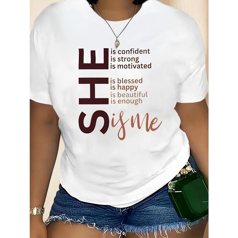 Women's Front Print Tee Short Sleeve Casual Sports Style Summer Comfort Breathable Top