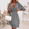New Medium and Long Dress, Waist Pullover, Bohemian Print Short-sleeved Floral Dress.
