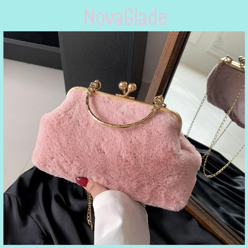 Soft and Plush Material: Made from high-quality plush fabric, this handbag offers a comfortable feel while maintaining a stylish appearance.
