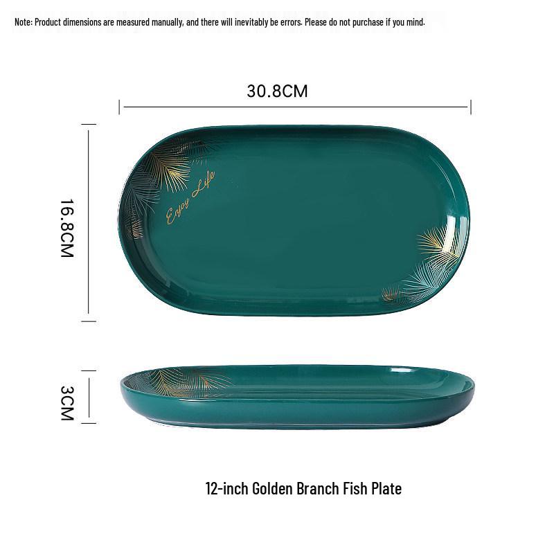 Set of 2 Peacock Green Oval Ceramic Fish Plates - Luxury Sushi and Dishware Set