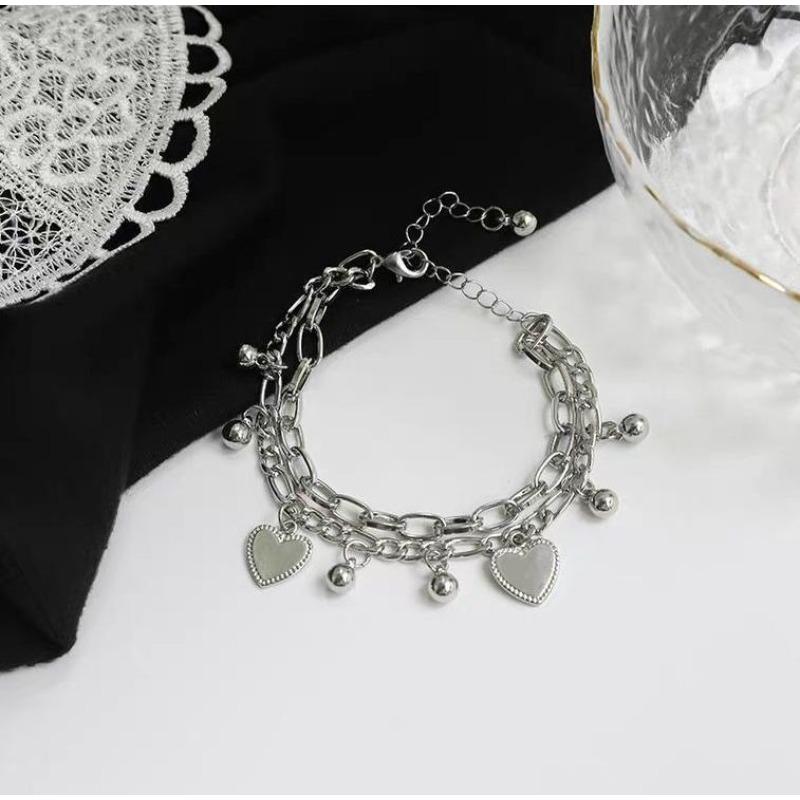 Double-layer Peach Heart Retro Court Style Girl Heart Cold Wind Bracelet Small Ball Pendant Love Temperament Hand Jewelry