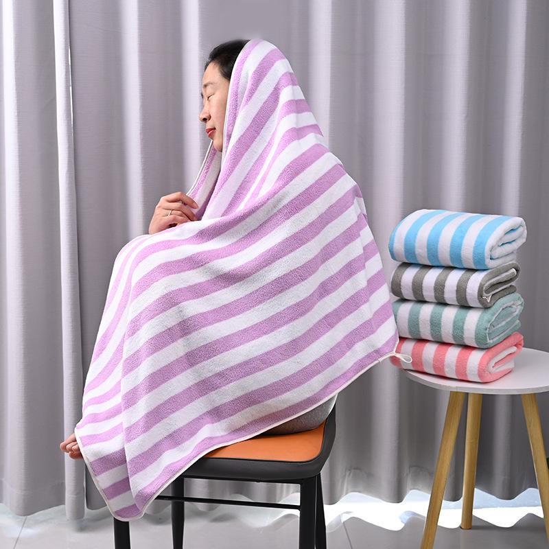 Coral Velvet Two-Color Striped Towel - Large, Thick, Absorbent, No Shedding, Ideal for Bathing & Children's Face Washing