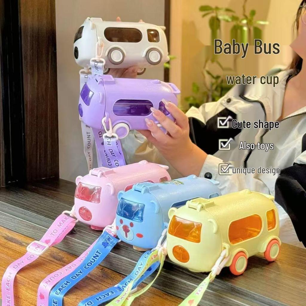High-Capacity Children's Pop-Up Straw Water Cup - Portable Baby Bus Design
