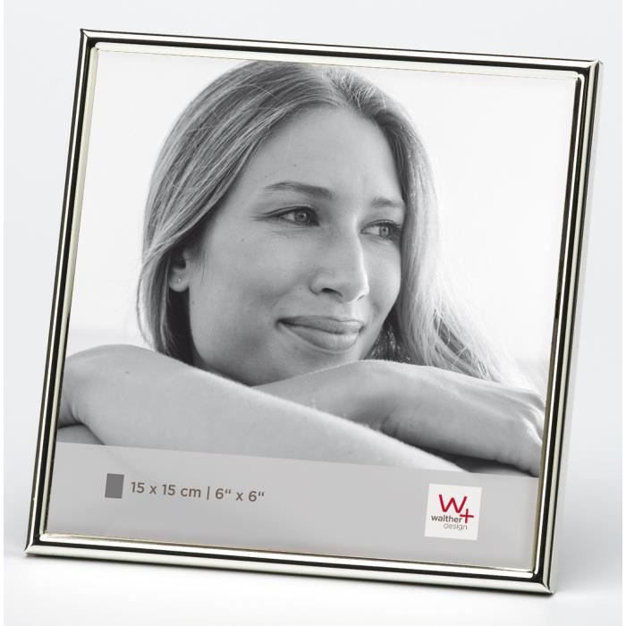 Cadre en portrait - Chloe - argent effet miroir - 15 x 15 cm - dos velours noir support H/V