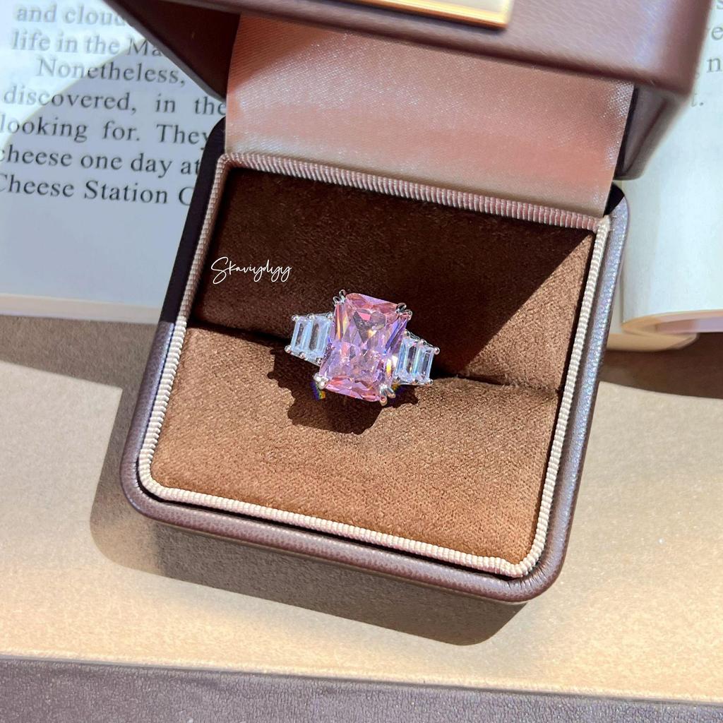 Xiaohongshu-Recommended Classic Pink Moissanite Square Diamond Ring
