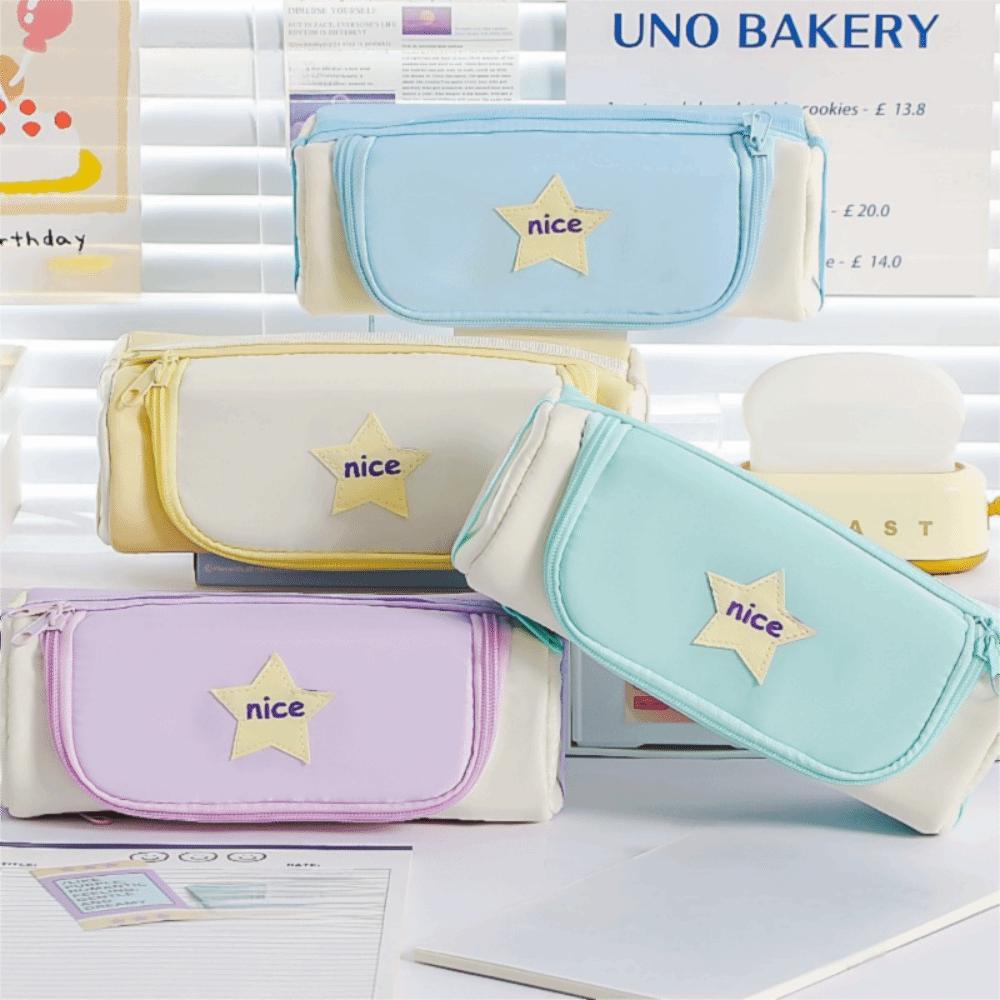Large Capacity Korean Pencil Bag Makeup Bag Stationery Storage Bag Cartoon Star Pencil Case Gifts