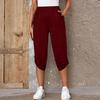 Women's Casual Black Elastic Waist Button Hem Capri Pants