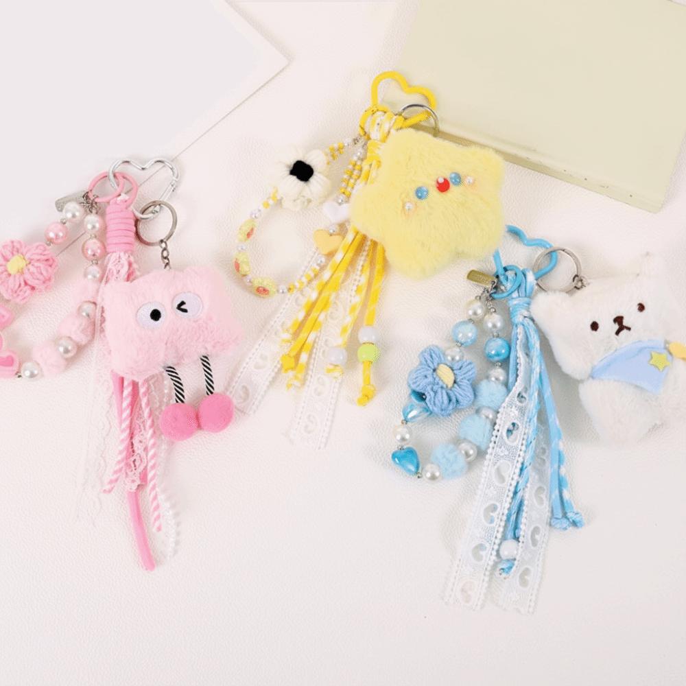 Stuffed Plush Star Keychain Kawaii Bear Plush Pendant Star Doll Pendant Home Decor