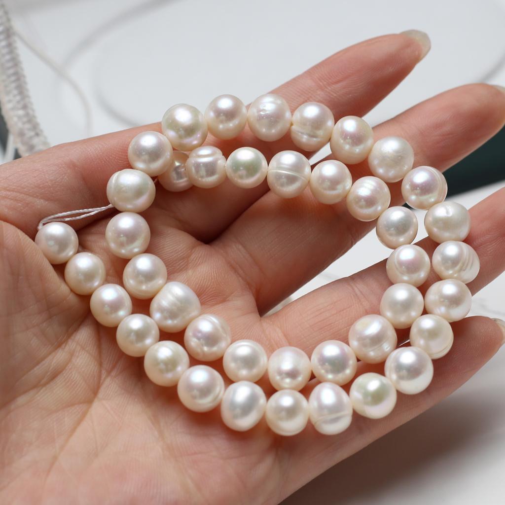 1String, White Natural Freshwater Pearls, Boho Handmade Round Pearl Beads for Jewelry Making DIY Necklaces Crafts (Beads 9-10mm, Length 36cm)