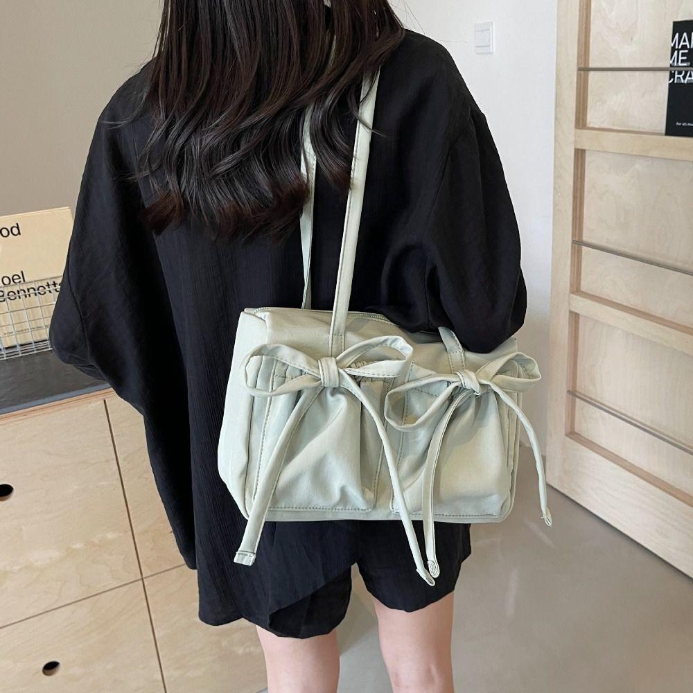 Bowknot Pleated Shoulder Bag Large Capacity Underarm Bag Trendy Armpit Bag Girls