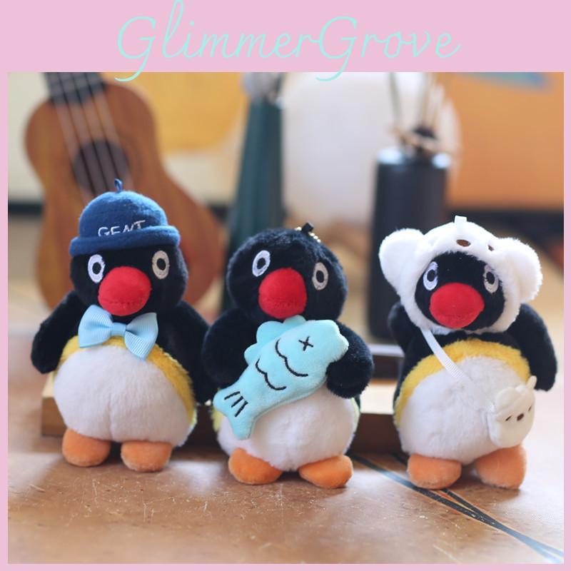 Adorable Design: Cute penguin characters with distinct accessories such as a bow-tie hat, white crossbody bag, and fish, making this plush keychain a charming accessory.