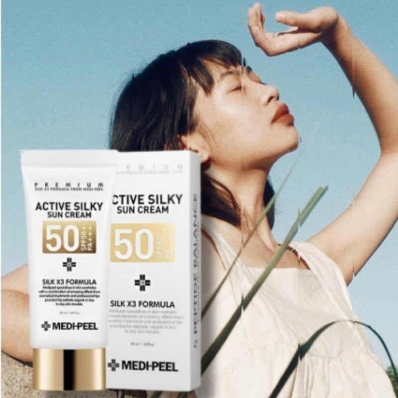 medi peel sunscreen, silky sun cream spf50, korean sunscreen pa+++, lightweight sunscreen korea, moisturizing sun cream, no white cast sunscreen, kbeauty uv protection, daily sunscreen for face, smooth finish sunscreen, makeup base sunscreen