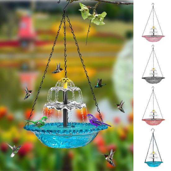 Enhance your garden with this solar fountain bird bath, designed to attract a variety of birds and create a tranquil outdoor atmosphere. Equipped with metal hook and three sturdy chains, it's easy to hang securely on your patio or garden.