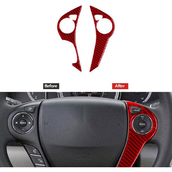 Car Red Carbon Fiber Steering Wheel Button B-Type Decorative Cover for Honda Accord 2013-17