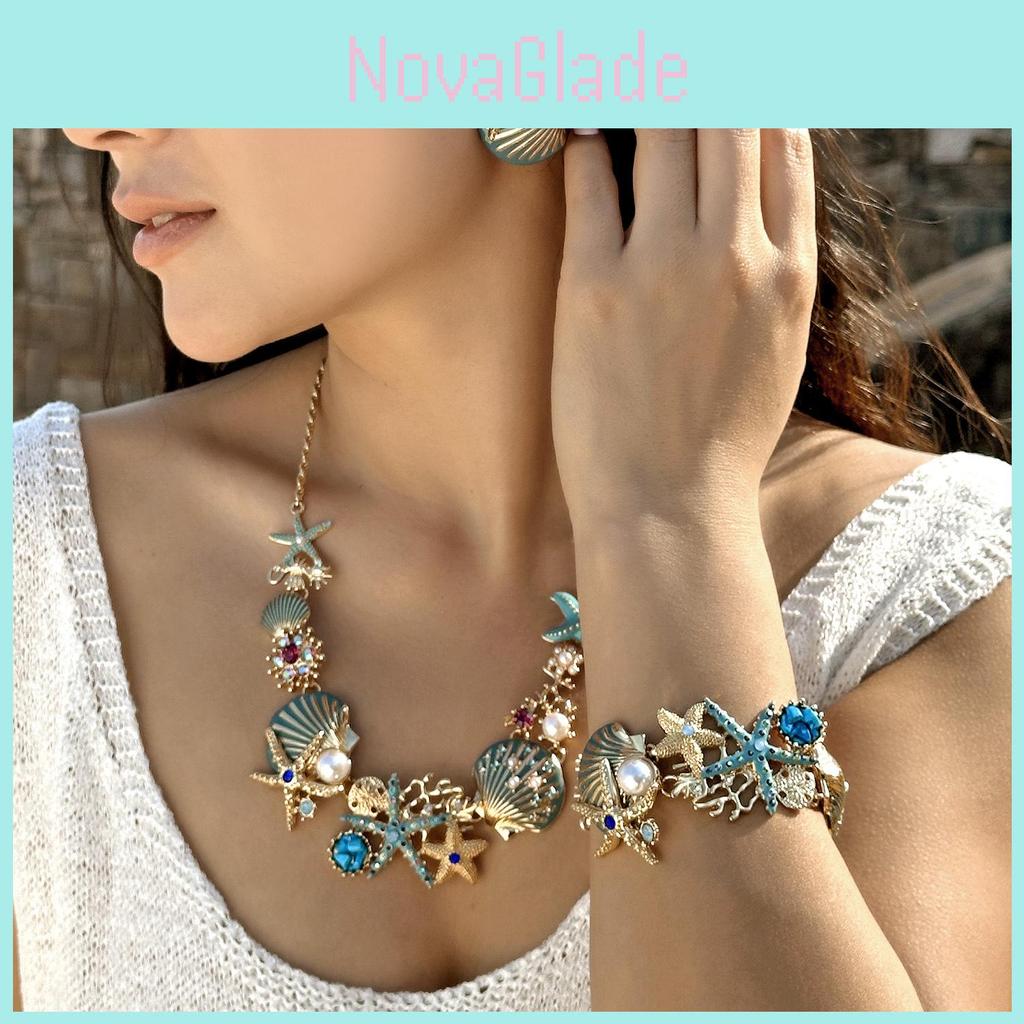 Ocean Starfish Necklace And Bracelet Set With Zinc Alloy Charm For Summer Fashion Women