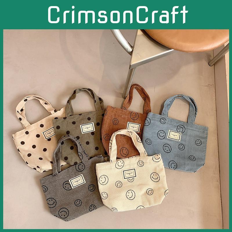 Vintage Corduroy Polka Dot Tote Bag For Women Soft Handle Cute Lunch Bag