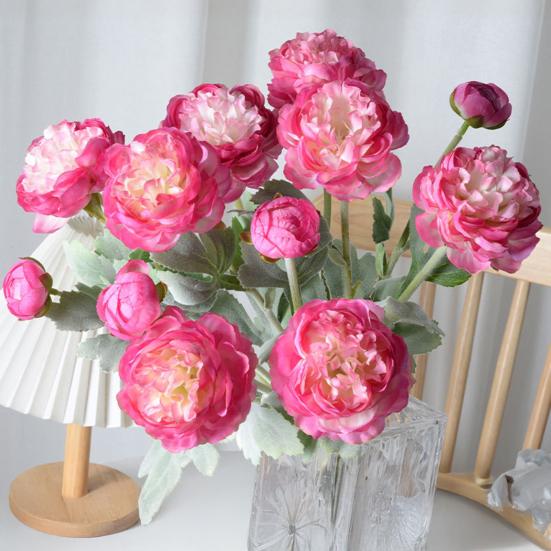 This artificial flower features a natural color transition that complements various decor styles, including Korean, French, retro, and light luxury themes. Each branch includes three heads with blooming flowers and buds, showcasing full, layered petals that realistically mimic soft peonies. Designed for versatility, a single branch can create an elegant floral arrangement without needing additional flowers.