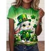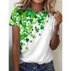 Women's T-shirt - Green Lucky Clover - 3D Printed - Loose Collar - Short Sleeve - T-Shirt - Women's Clothing