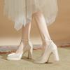 Platform High Heels Women Chunky Heels Mary Jane Shoes Elegant Satin Square Head Wedding Shoes Women Ankle Buckle Single Shoes