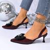 2026 Summer New Bow Pointed Toe Stiletto Sandals Wrapped Back Trip Strap Anti-slip Wear-resistant Kitten Heel Shoes