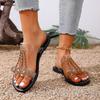 2026 Plus Size 43 Bohemian Style Flat Sandals for Women Summer New Fashionable Luxurious Rhinestone Casual Slippers