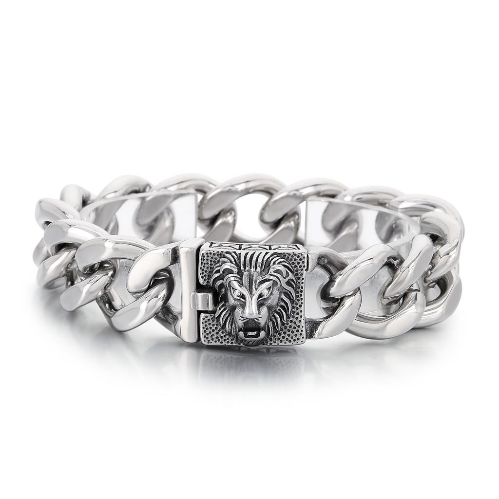 Stainless Steel Lion Charm Bracelet Men With Shiny Curb Chain Jewelry for Male Street Rock Jewelry