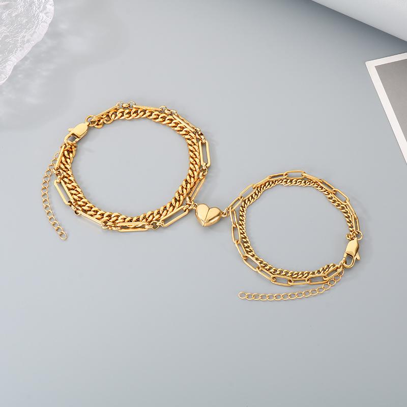 Magnetic Couple Bracelets Gold Color Lock and Key Design Stainless Steel Matching Bracelets for Boyfriend Girlfriend Valentin
