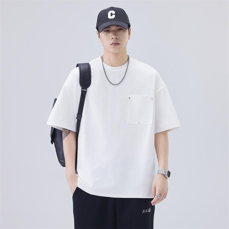 Latest Summer Mens T-padded Pure Cotton Quality Ice-feeling Pocket Comfortable Fit Round Neck T-shirt Short Sleeves