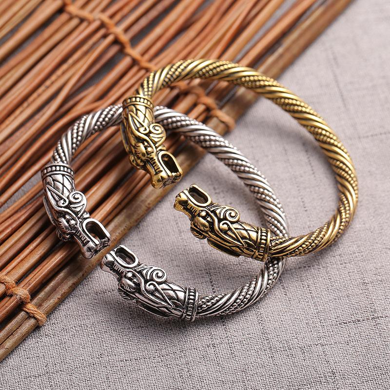 Copper Dragon Head Cuff Bangle Male Female Animal Adjustable Size Hand Arm Jewelry Gold Vintage Silver