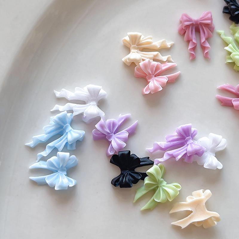 50Pcs 2Sizes Colorful Ribbon Bow Long Wavy Bow Nail Art Accessories 3D Resin Nail Charms Japanese Nail Decorat Cute Parts Ribbon