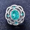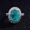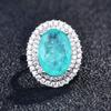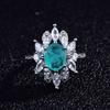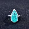 Open Ring Women Micro Paved Full Diamond High Carbon Pear Shaped Imitation Paraiba Ring