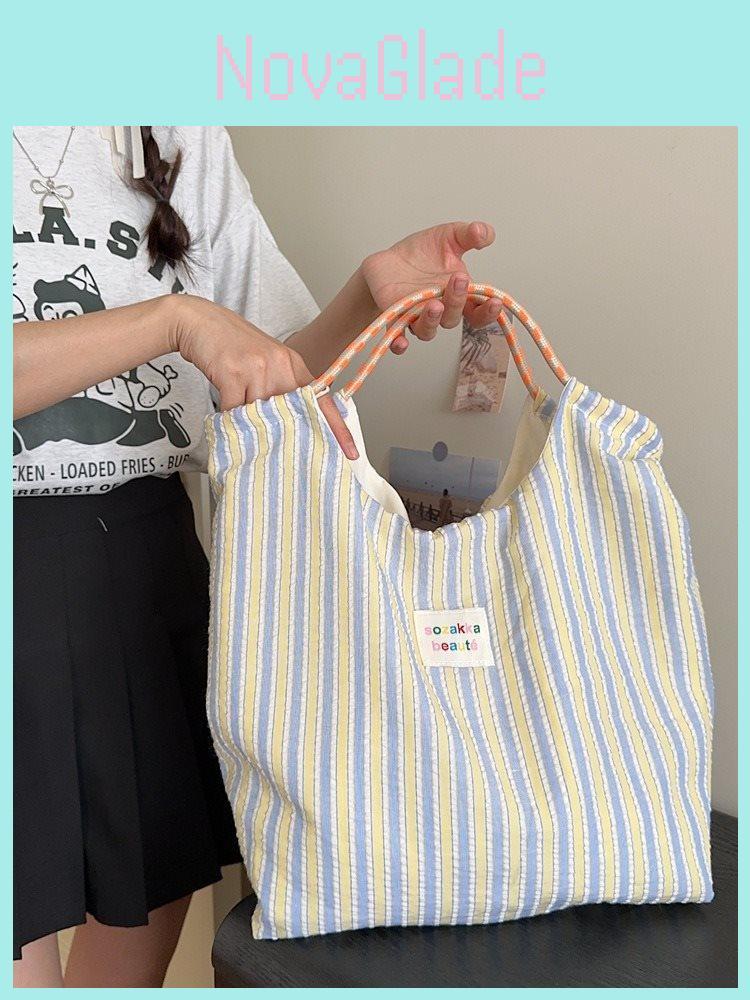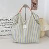 Stylish Canvas Tote Bag For Women Large Capacity Casual Travel And Commute With Fresh Floral Stripes