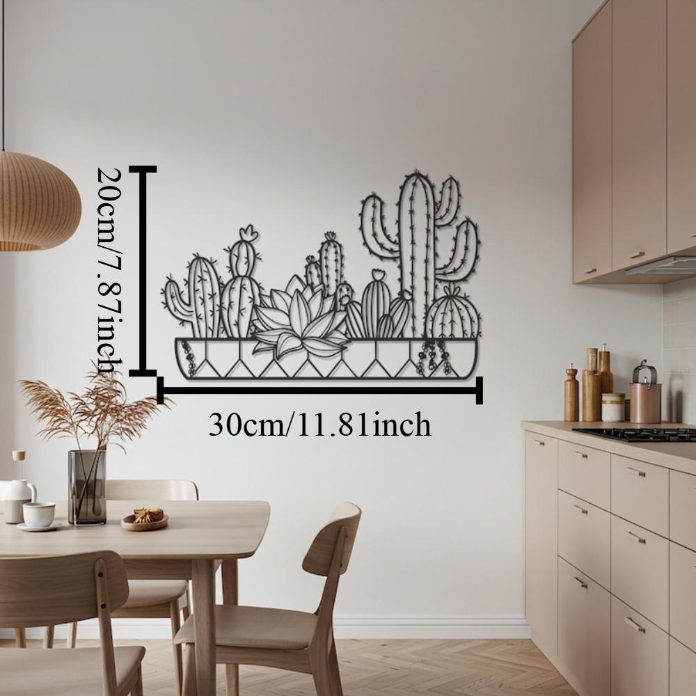 Wrought Iron Cactus Wall Decor, Minimalist Botanical Metal Art, Modern Nature Inspired Sculpture for Living Room Office