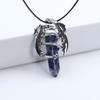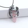 Animal Dragon Man Necklace Natural Gem Stone Healing Pink Quartz Hexagonal Crystal Pendant Vintage Jewelry for Women Gift