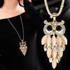 Fashion Crystal Opal Owl Long Necklace for Women New Statement Sweater Chain Necklaces