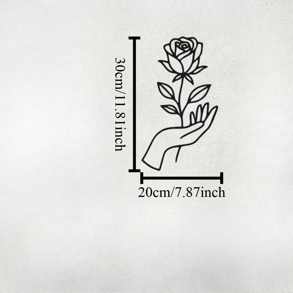 Black Rose Metal Wall Art, Modern Flower Line Sculpture, Minimalist Hand Decor, Unique Iron Craft Gift for Living Room