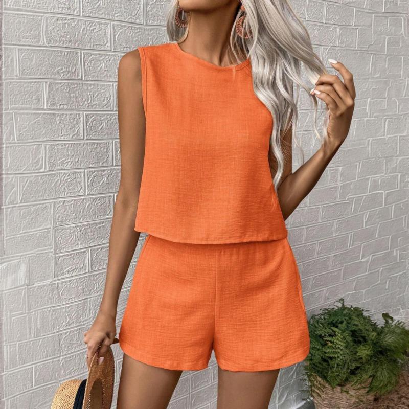 Women's Vacation Style Sleeveless Top and Shorts Summer Clothes Set