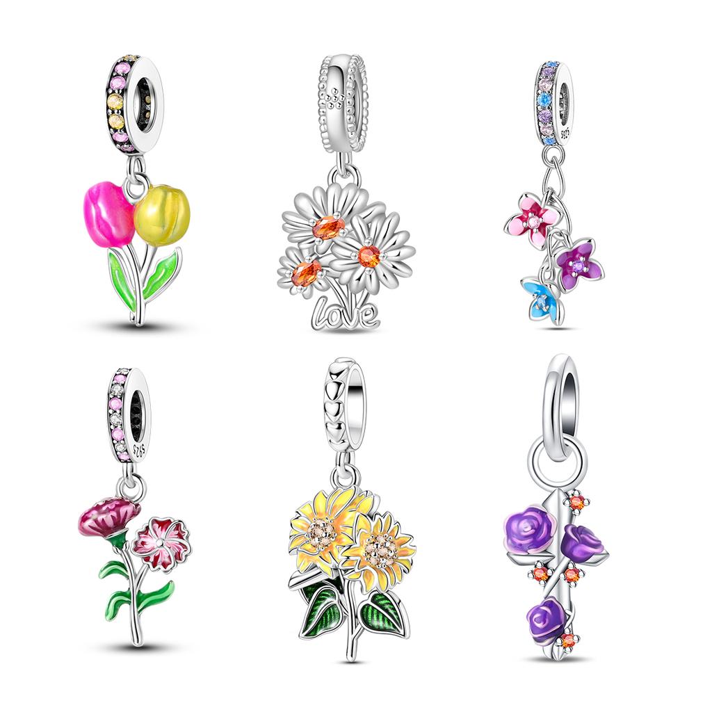 Charms Spring Floral Theme Romantic Natural Colorful Purple Beads Fit 925 Charms Bracelet Beads Jewelry Gifts for Women