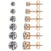 6pairs/set 3-8mm Stainless Steel Stud Earrings With Sparkling Hypoallergenic Cubic Zircon For Men And Women