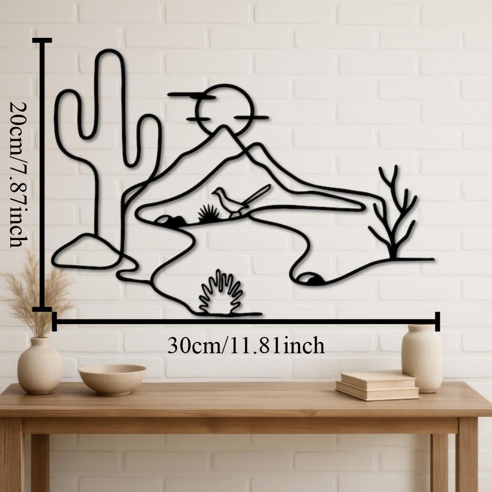 Metal Cactus Wall Art Desert Landscape with Roadrunner Southwest Home Decor